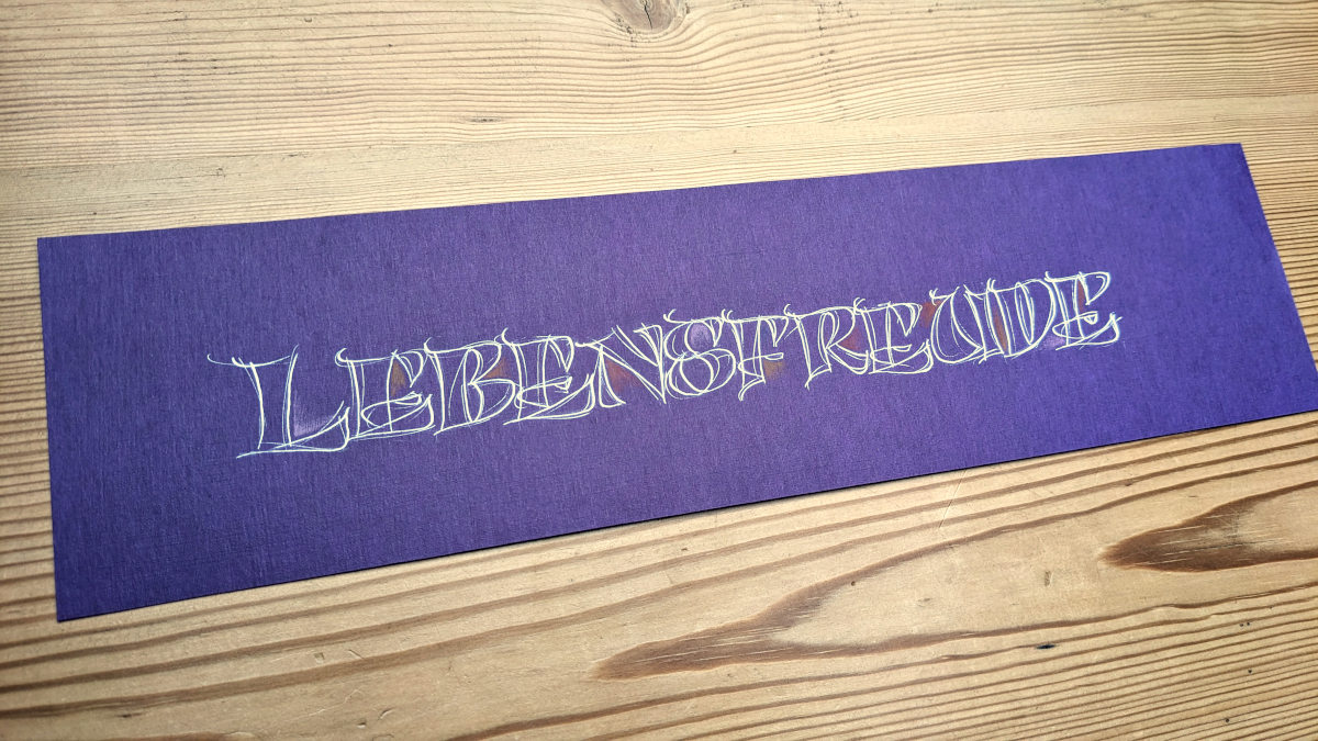 Wir starten mit der Grundschrift „Monaleya“ und arbeiten uns zu Variationen vor. Die erlernte Technik macht es auch möglich, mit anderen Werkzeugen zu arbeiten, die im modernen Lettering sehr geschätzt werden.